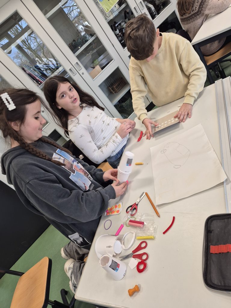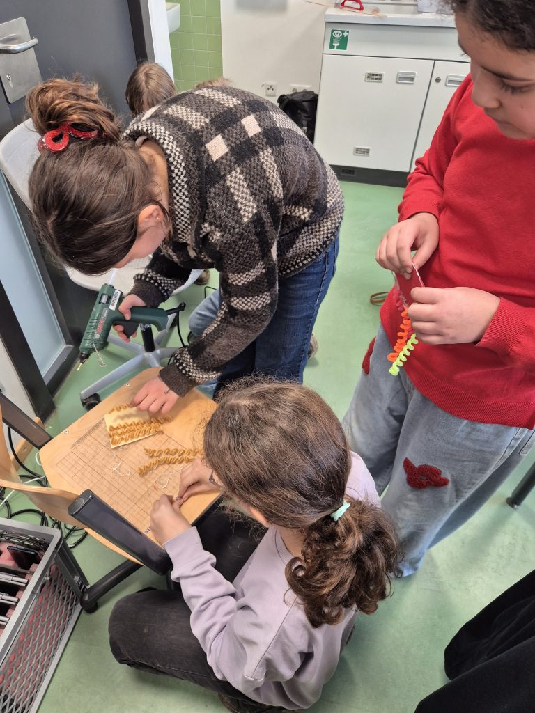 Trotz der offiziellen Zielgruppe war es für uns ein Glücksfall, dass die Klasse 4c an den Workshops teilnehmen durfte, da das Programm im Regelfall erst ab Klasse 5 zugänglich ist. So ergab sich im Rahmen unserer BILA-Projekts die tolle Chance, schon früh Naturwissenschaft und Zukunftsthemen kindgerecht und mit viel Freude zu entdecken. Die Schulkinder hatten die Gelegenheit, sich zu den Themen „Energiedomino“ (Bau einer Kettenreaktion mit Teilen aus dem Lasercutter) und „Mobilibot“ (Entdeckt Zukünfte der Mobilität durch Robotik) spielerische und handlungsorientiert auseinanderzusetzen.