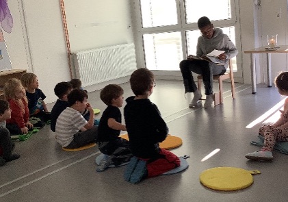 An gleich fünf Orten wurde gleichzeitig vorgelesen: Rund 40 Schülerinnen und Schüler der weiterführenden Schulen lasen für 240 Grund- und 30 Förderschülerinnen, während fast 20 Grund- und Förderschülerinnen für die Kita-Kinder der Einrichtungen Spatzennest, Storchennest und Jahngarten vorlasen. Die Kinder waren mit Begeisterung dabei, hörten gespannt zu und tauschten sich über ihre Lieblingsgeschichten aus.