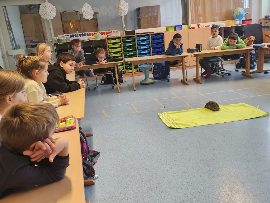 Im Mittelpunkt standen der Igel und das Eichhörnchen. Die Schülerinnen und Schüler erfuhren viele interessante Dinge über ihre Lebensweise und ihre Gewohnheiten, zum Beispiel was sie fressen, wo sie leben und wie sie sich im Jahresverlauf verhalten. Die Kinder hörten aufmerksam zu, stellten neugierige Fragen und beteiligten sich begeistert am Gespräch.